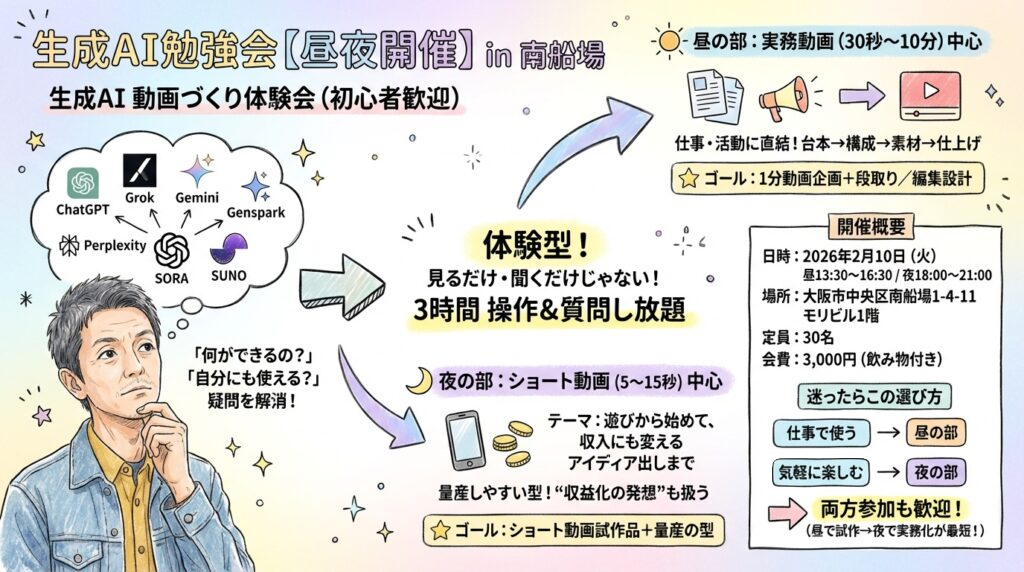 生成AI 動画づくり体験会(初心者歓迎)昼の部/夜の部